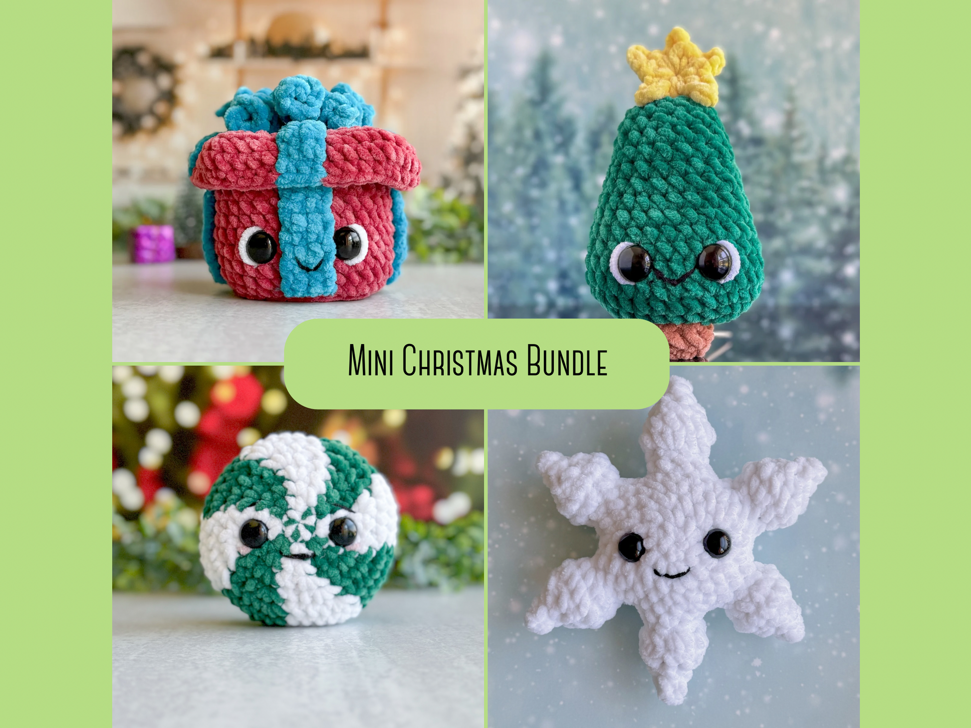 Christmas Crochet Pattern Mini Bundle: Present, Christmas Tree, Peppermint, Snowflake